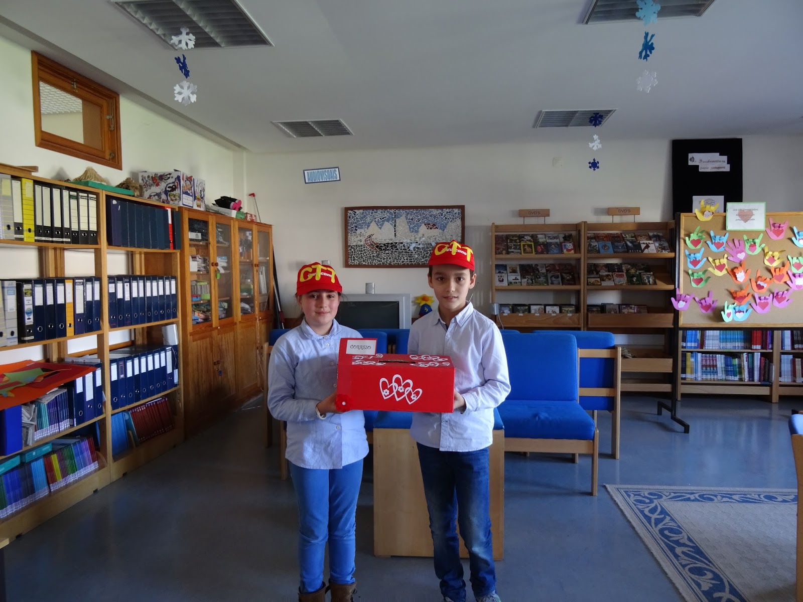 Nem os mais incautos escaparam a uma cartinha de amizade/amor. Não admira, pois a primavera está quase a chegar. Para a distribuição das cartas, contámos com a preciosa e prestável colaboração dos nossos carteiros, Adriana e Guilherme, do 5ºA.